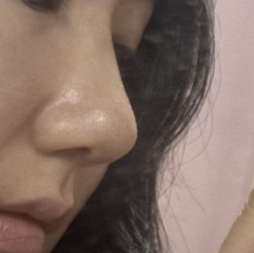 Đầu mũi vẫn hơi hếch lên một chút, nhưng bác sĩ nói rằng nó sẽ từ từ hạ xuống và trở nên tự nhiên hơn.