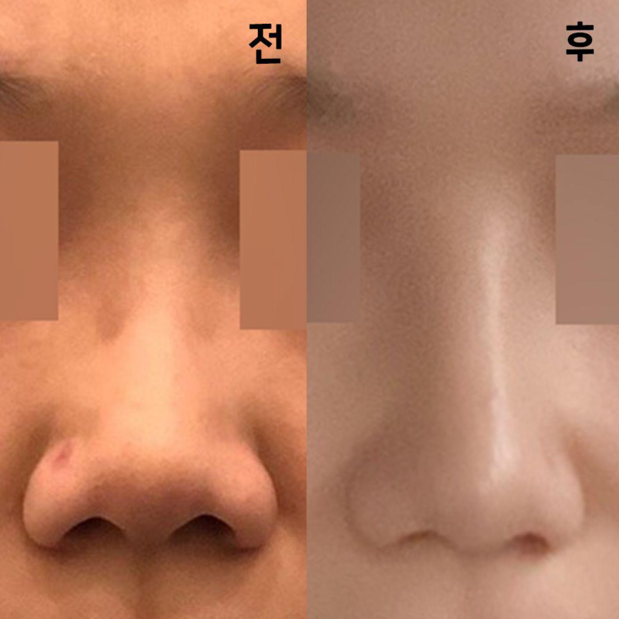 Trước khi phẫu thuật, đầu mũi của mình như bị cuộn vào trong thì phải? Nó bị giấu vào trong cùng với trụ mũi.