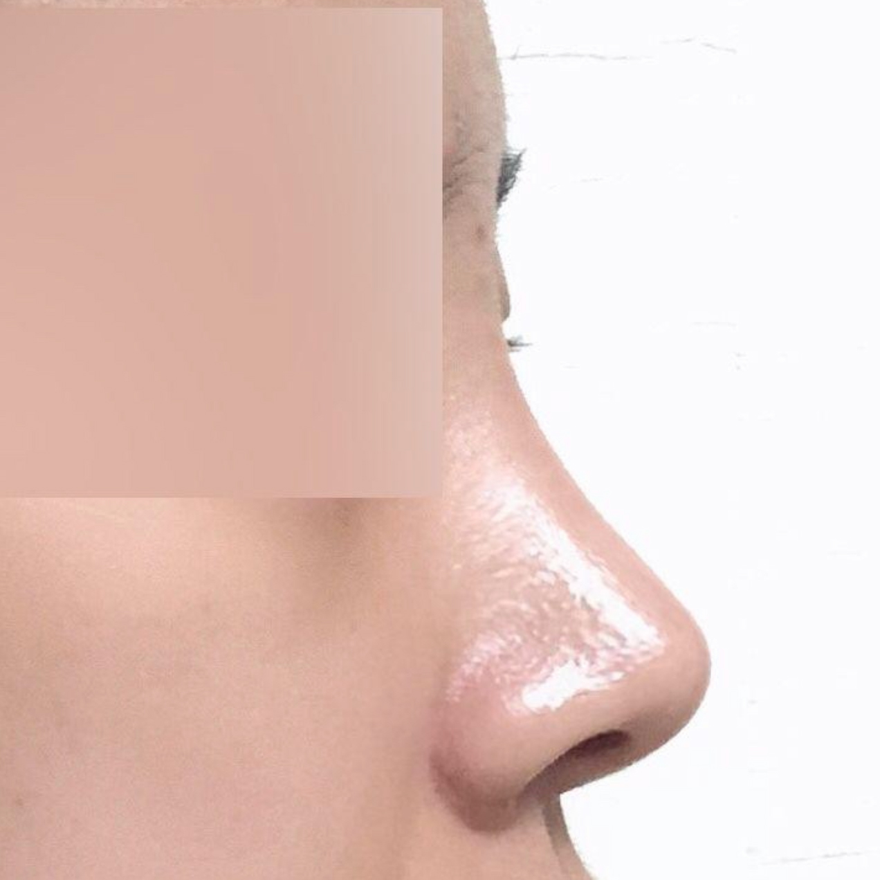 Trước khi phẫu thuật, mũi mình ngắn và tẹt, đầu mũi hơi hếch lên.