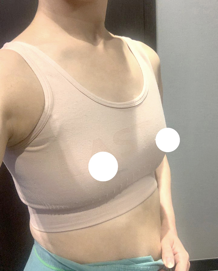 Ban đầu, mình nghĩ rằng phẫu thuật nâng ngực có nghĩa là làm cho ngực to ra, nhưng sau khi phẫu thuật nâng ngực lần này, mình nhận ra rằng kích thước phù hợp với mình quan trọng hơn nhiều. Vì mình thường xuyên tập múa ba lê nên có nhiều chuyển động, bác sĩ đã cân nhắc rằng việc tăng kích thước quá mức có thể gây bất tiện và giới thiệu kích thước túi độn cân đối.
