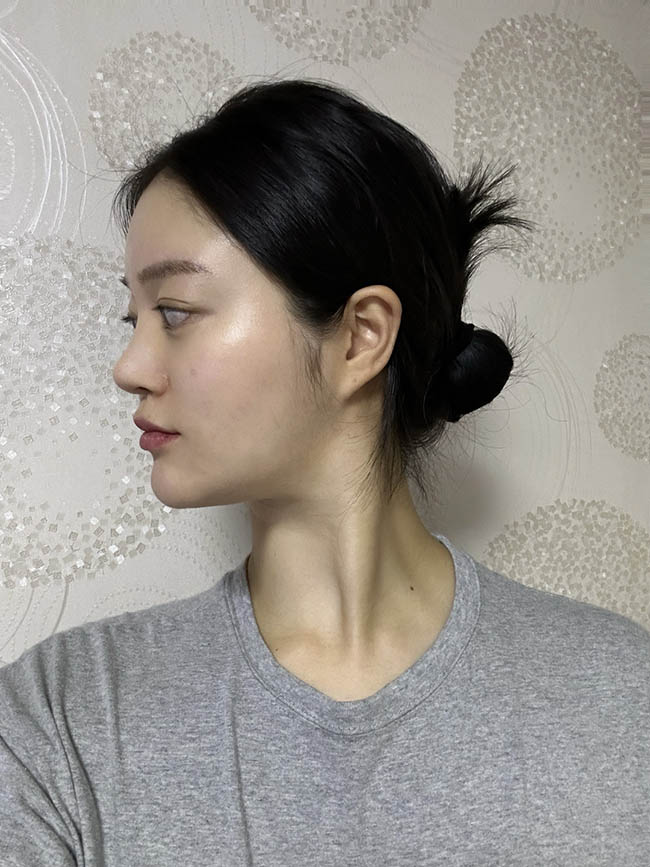 평소 정면에서 보았을 때 둥근 얼굴형과 튀어나온 마녀턱이 싫었고 콧구멍이 비대칭인게 항상 거슬렸답니다.