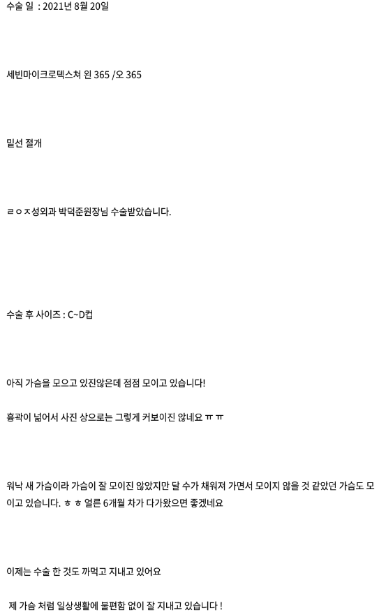 Viện Phẫu thuật Thẩm mỹ Lienjang ★★★★★ 5.0 [강남언니] 가슴성형(세빈마텍) / 2개월차/ 닉네임:정쓔기 Ẩ******@ | 2022.01.11 | 20 리엔장성형외과에서 수술 받은 후 강남언니에 업로드한 실제 후기입니다. 수술항목: 가슴성형(세빈마이크로텍스쳐 / 365cc) Quay lại danh sách