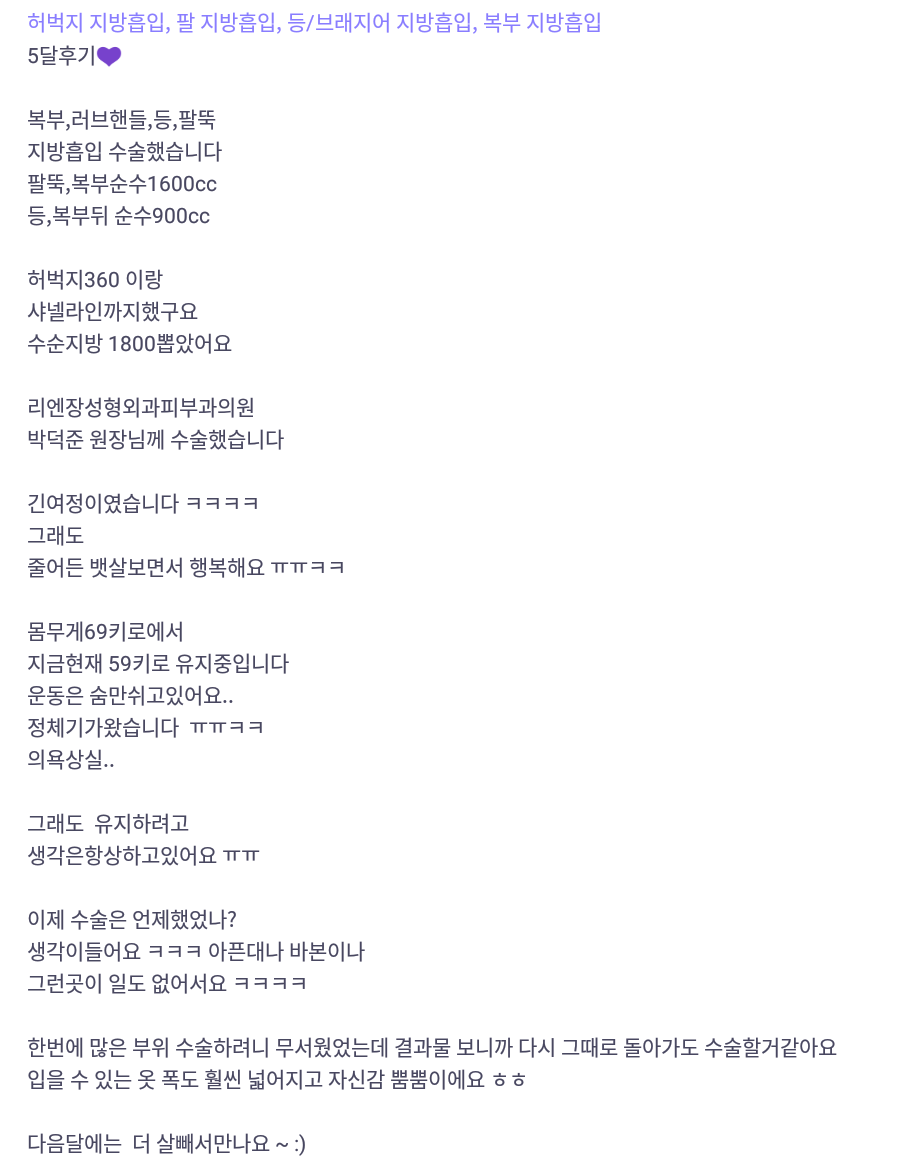 Viện Phẫu thuật Thẩm mỹ Lienjang ★★★★★ 5.0 [바비톡] 복부, 팔뚝 지방흡입 / 5개월차/ 닉네임:먹지마아는맛 Ẩ******@ | 2022.01.11 | 22 Quay lại danh sách