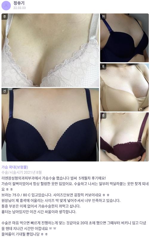 Viện Phẫu thuật Thẩm mỹ Lienjang ★★★★★ 5.0 [바비톡] 가슴성형 / 5개월차 / 닉네임 : 정쓔기 Ẩ******@ | 2022.03.17 | 18 Quay lại danh sách