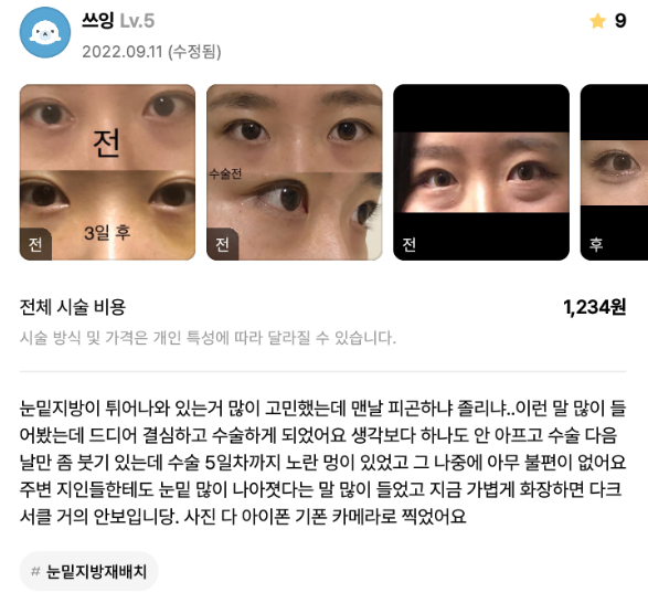 Viện Phẫu thuật Thẩm mỹ Lienjang ★★★★★ 5.0 [강남언니] 눈밑재배치 / 1개월차/ 닉네임: 쓰잉 Ẩ******@ | 2023.01.05 | 21 Quay lại danh sách