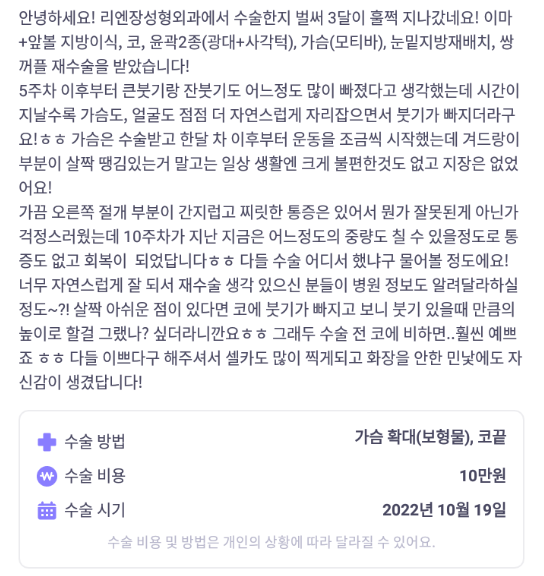 Viện Phẫu thuật Thẩm mỹ Lienjang ★★★★★ 5.0 [바비톡] 눈재수술, 눈밑지방재배치, 코, 윤곽2종(광대, 사각턱), 가슴(모티바), 지방이식(이마, 앞볼) / 3개월차 /닉네임: 듀듀듀쥬쥬 Ẩ******@ | 2023.02.13 | 20 Quay lại danh sách