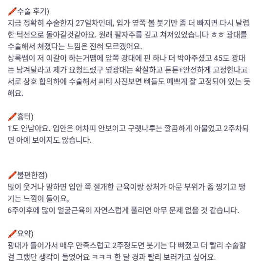 Viện Phẫu thuật Thẩm mỹ Lienjang ★★★★★ 5.0 [바비톡] 광대축소 / 1개월차 / 닉네임 : 치이이이킨 Ẩ******@ | 2024.07.02 | 23 Quay lại danh sách