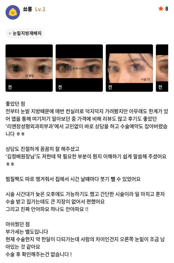 Viện Phẫu thuật Thẩm mỹ Lienjang ★★★★★ 5.0 [강남언니] 눈밑지방재배치 / 1개월차 / 닉네임: 쑈롱 Ẩ******@ | 2024.08.16 | 18 Quay lại danh sách