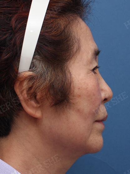Max Lifting (Phẫu thuật căng da mặt)+Cấy mỡ+Cắt mí trên+Cắt mí dưới+Tái tạo mỡ dưới mắt (Nghiêng) | Góc chụp: Nghiêng