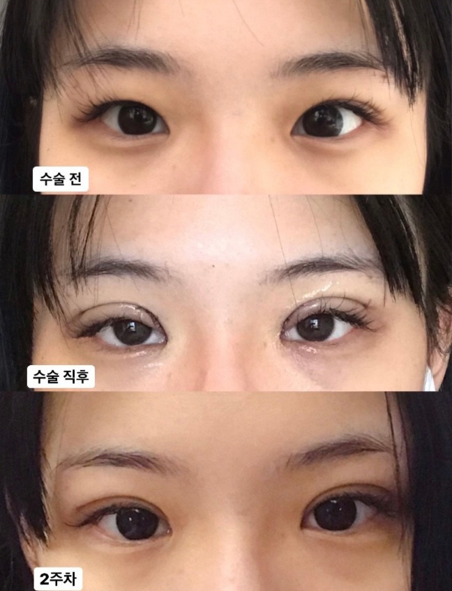 Đây là lần đầu tiên mình phẫu thuật thẩm mỹ nên mình thực sự rất lo lắng và hồi hộp, nhưng mình chỉ ngủ một lúc rồi tỉnh dậy thì ca phẫu thuật đã kết thúc... Mình hoàn toàn ổn nên đã tự về nhà... Sau phẫu thuật, mình không hề cảm thấy đau đớn. Mình đã lo lắng rằng vết sưng sẽ kéo dài, nhưng vết sưng giảm dần từ ngày hôm sau, và đến ngày thứ 4, nó trông giống như mắt mình dán miếng dán kích mí. Một tuần sau, mình đến cắt chỉ và bác sĩ nói rằng mình không bị sưng nhiều, vì vậy mình cảm thấy xứng đáng với công sức chườm đá và bôi thuốc mỡ.