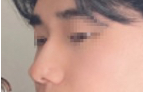 Có thể bạn không nhìn rõ, nhưng mình bị gồ mũi nên đã cắt xương gồ, đặt silicone vào sống mũi và dùng sụn vành tai cho đầu mũi.