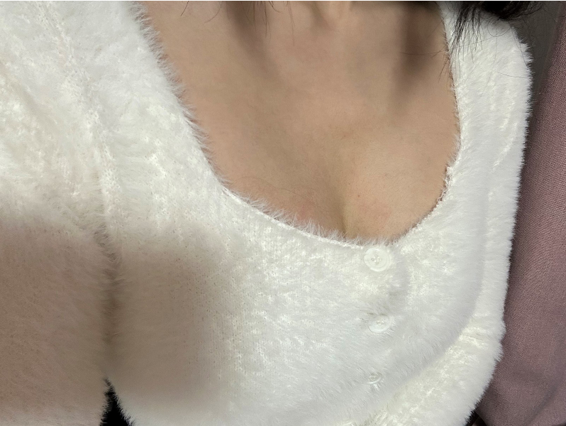 Mình thuộc tạng người gầy và da mỏng nên phần trên bầu ngực xuống chậm hơn một chút,