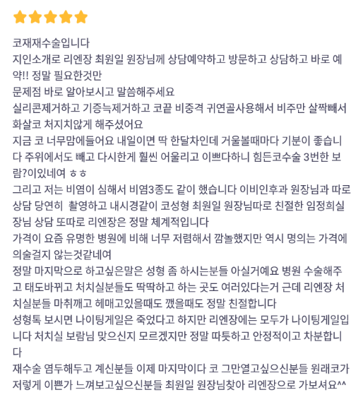 Viện Phẫu thuật Thẩm mỹ Lienjang ★★★★★ 5.0 [바비톡] 코재수술 / 1개월차/ 닉네임: 코알라치치 Ẩ******@ | 2023.01.03 | 24 Quay lại danh sách