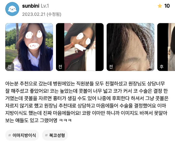 Viện Phẫu thuật Thẩm mỹ Lienjang ★★★★★ 5.0 [강남언니]코성형, 지방이식 1개월차 / 닉네임 : sunbini Ẩ******@ | 2023.02.24 | 23 Quay lại danh sách