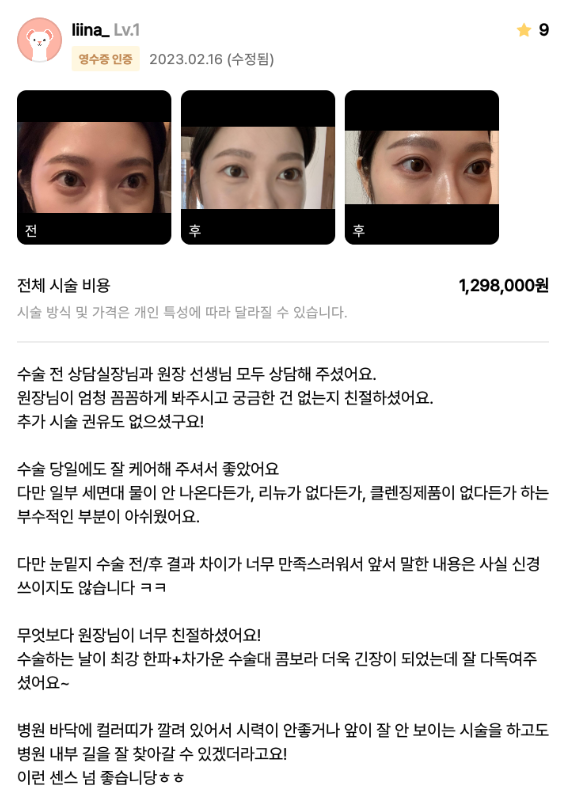 Viện Phẫu thuật Thẩm mỹ Lienjang ★★★★★ 5.0 [강남언니] 눈밑지방재배치 1개월차_liina_ Ẩ******@ | 2023.02.24 | 28 Quay lại danh sách