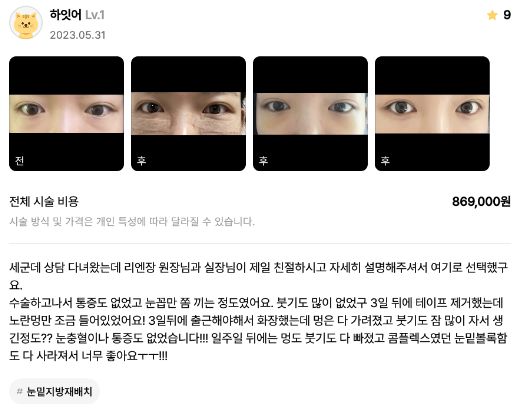 Viện Phẫu thuật Thẩm mỹ Lienjang ★★★★★ 5.0 [강남언니] 눈밑지방재배치 / 1개월차 / 닉네임 : 하잇어 Ẩ******@ | 2023.06.22 | 26 Quay lại danh sách