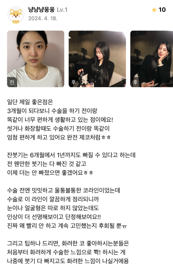 Viện Phẫu thuật Thẩm mỹ Lienjang ★★★★★ 5.0 [강남언니] 코성형 / 3개월차 / 닉네임:냥냥냥웅웅 Ẩ******@ | 2024.05.21 | 21 Quay lại danh sách