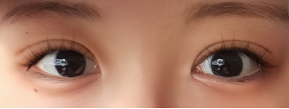 Đặc biệt, ngay cả khi nhắm mắt cũng không thấy sẹo, và khi trang điểm mắt, cảm giác mắt sắc nét hơn.
